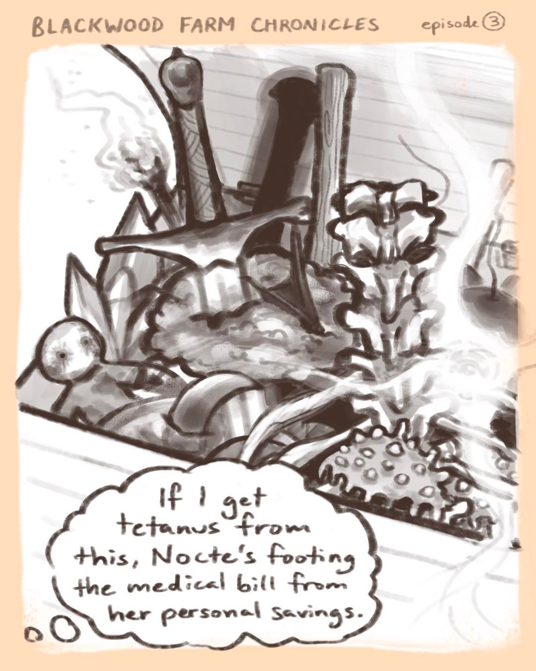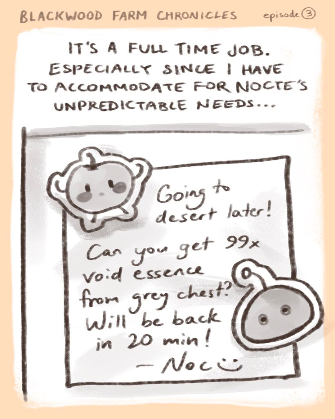 For the next episode, I wanted to gather some input from you guys. I could start working on the farmer backstory episode, which will be a pretty big tone shift, as it will tackle much more serious topics (believe it or not, Nocte has not always been this full of whimsy). It will definitely take longer to finish though, so while I work on it, I’ll do some sh*tposting on the side to blow off steam lol. The other option is 1 more goofy episode before we jump into the serious story. Let me know which you prefer! And as always, thank you for reading!