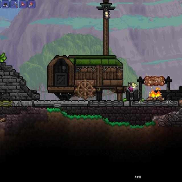 I leveled the terrain of my spawn point to make an Old One's Army arena, but a flat ground looks boring, so I built a few things while blending them with the terrain trying to make it look less flat. Just a start tho by Timely_Soup3140 Terraria