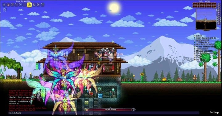one of my friend lags and freeze ingame and his character is standing there, meanwhile us got spawnkilled. EoL wont stop spamming projectiles at him. We were playing in multiplayer server lol by -RDC Terraria