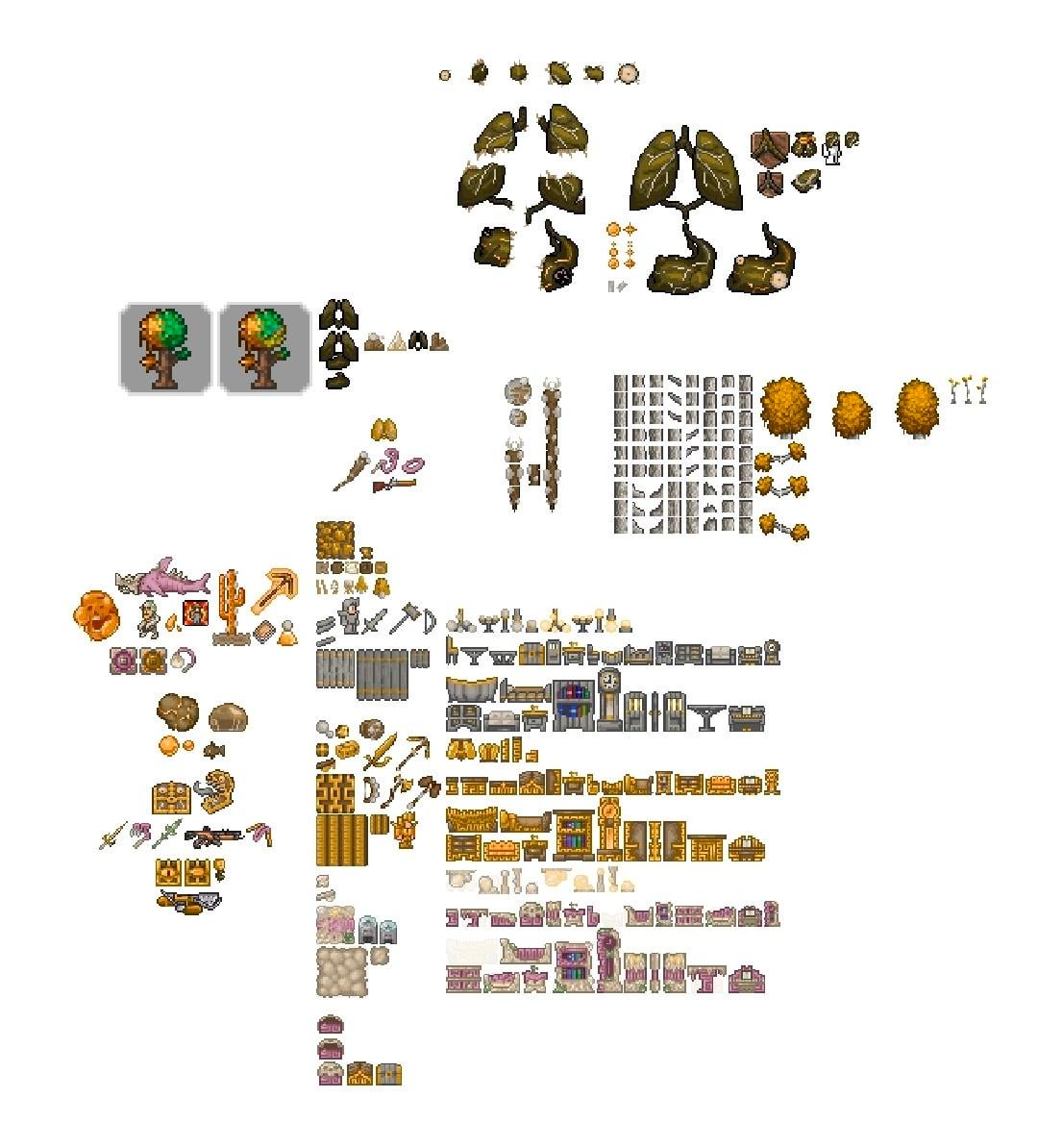 Added more enemies and finished the tree sprites, also added the fishing crates, and blight weapons, its also being developed into a mod with help from another user, will do the pigron, fish, and rod next