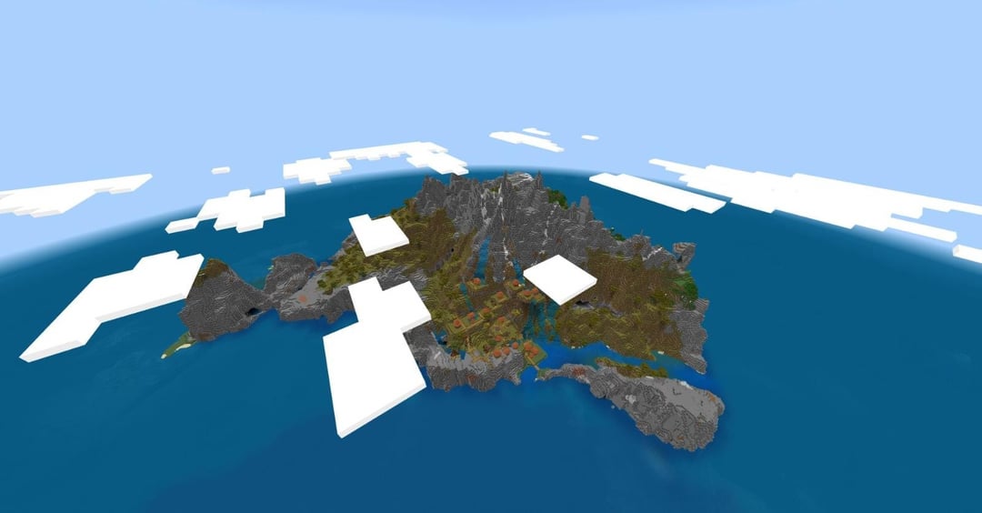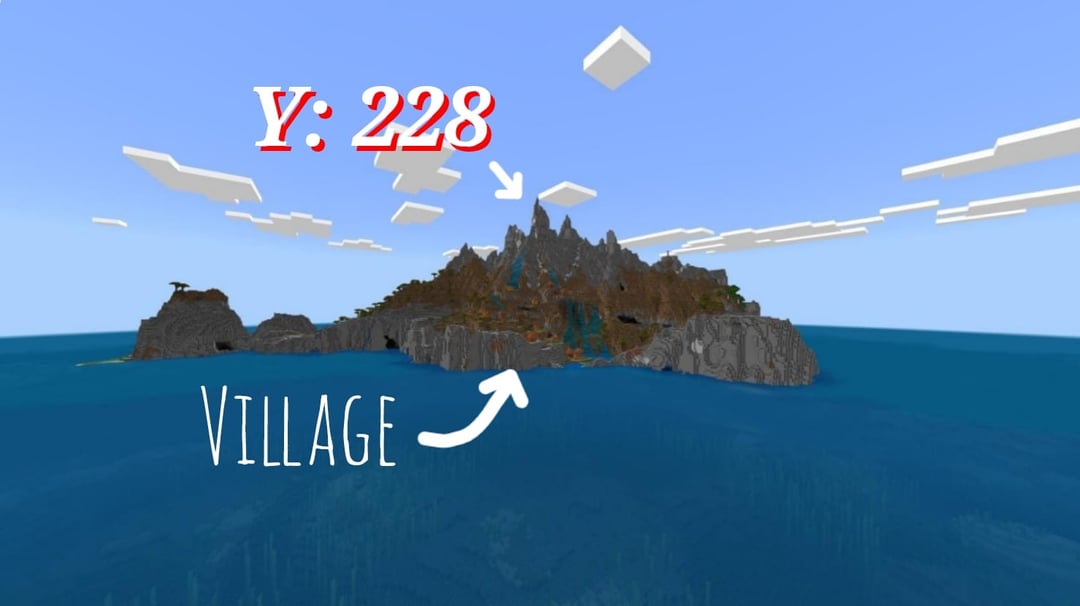 SEED: -7758372917823529319 Coordinates – X:0 , Z:0 (Spawn) 1.18+ The Village is exclusive to Bedrock Edition. but the island exists on both versions. video showcase (with vibrant visuals): https://youtu.be/2bweleSvkM0 by AlionLGND Minecraft Minecraft Seeds