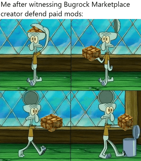This is not a joke, I actually saw that happen. I am sorry but Marketplace Add-ons are a complete scam and no one should be buying them, especially since all of them are literal slop or copies of Java mods.
