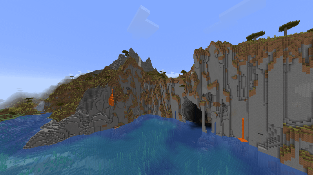 -MonochromeCrow on March 21, 2026 3:06 pm -9068345663298372710 near entire cliff is hollowed out by cave, goes the whole way through with a village on the other side