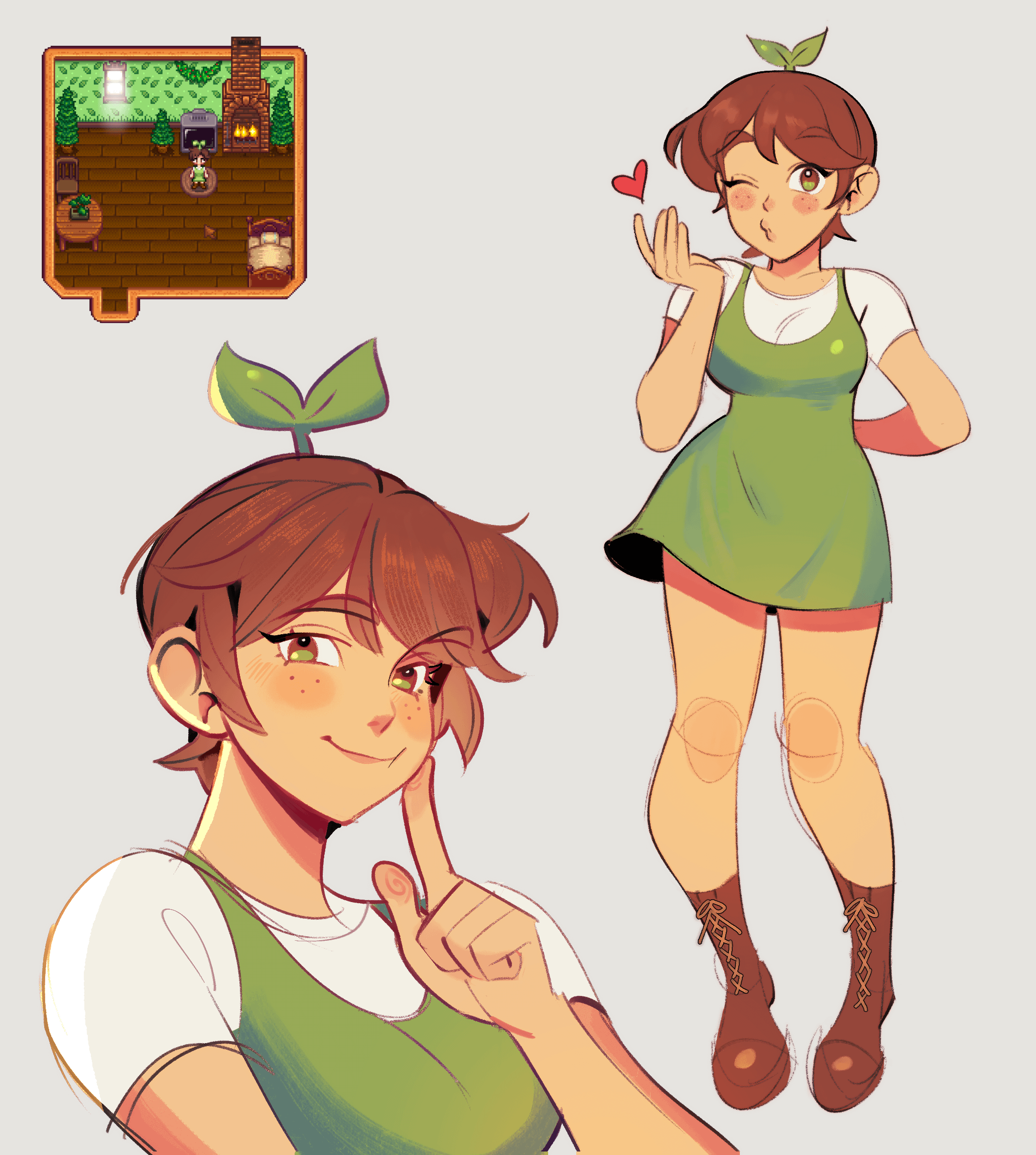 a couple doodles of my new farmer πŸ‘©β€πŸŒΎ