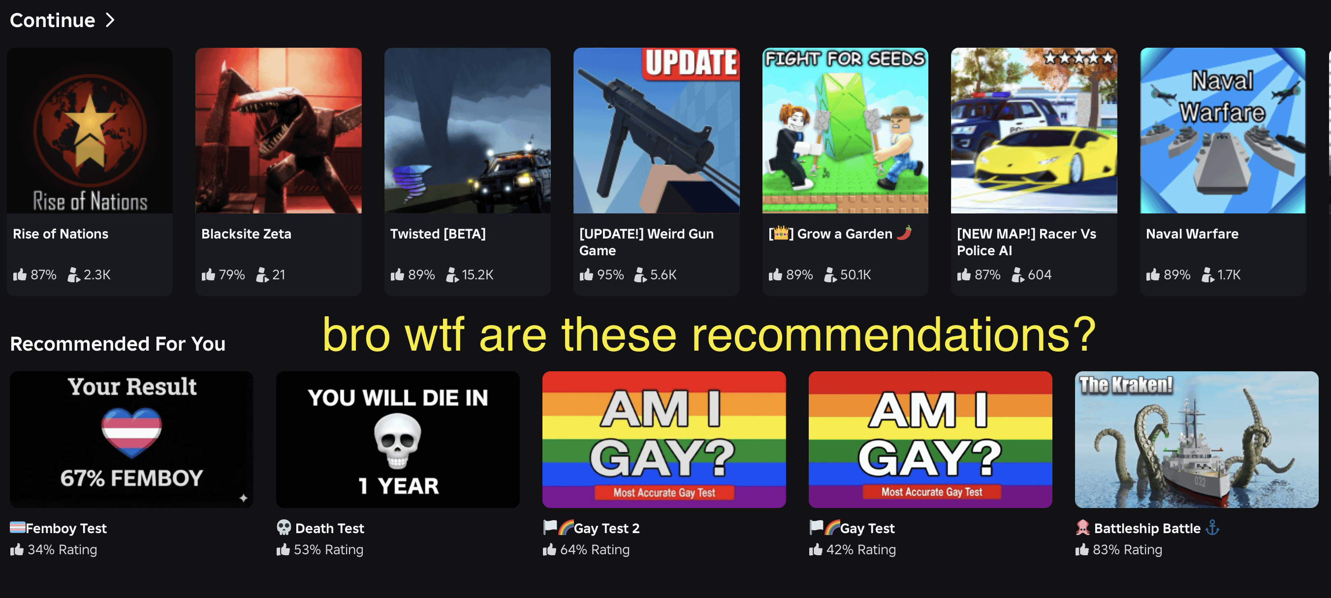 why are those recommendations on roblox makes sense why they have a low rating