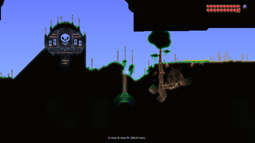 Exposed sword shrine next to a giant tree with a focused flinch staff inside