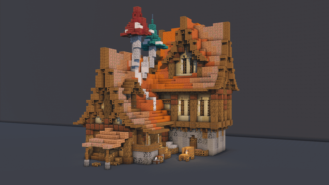 I'm building a house inspired by a Minecraft build. I can't find a block the right color for the roof. (Ignore the fact that I made the walls white)
