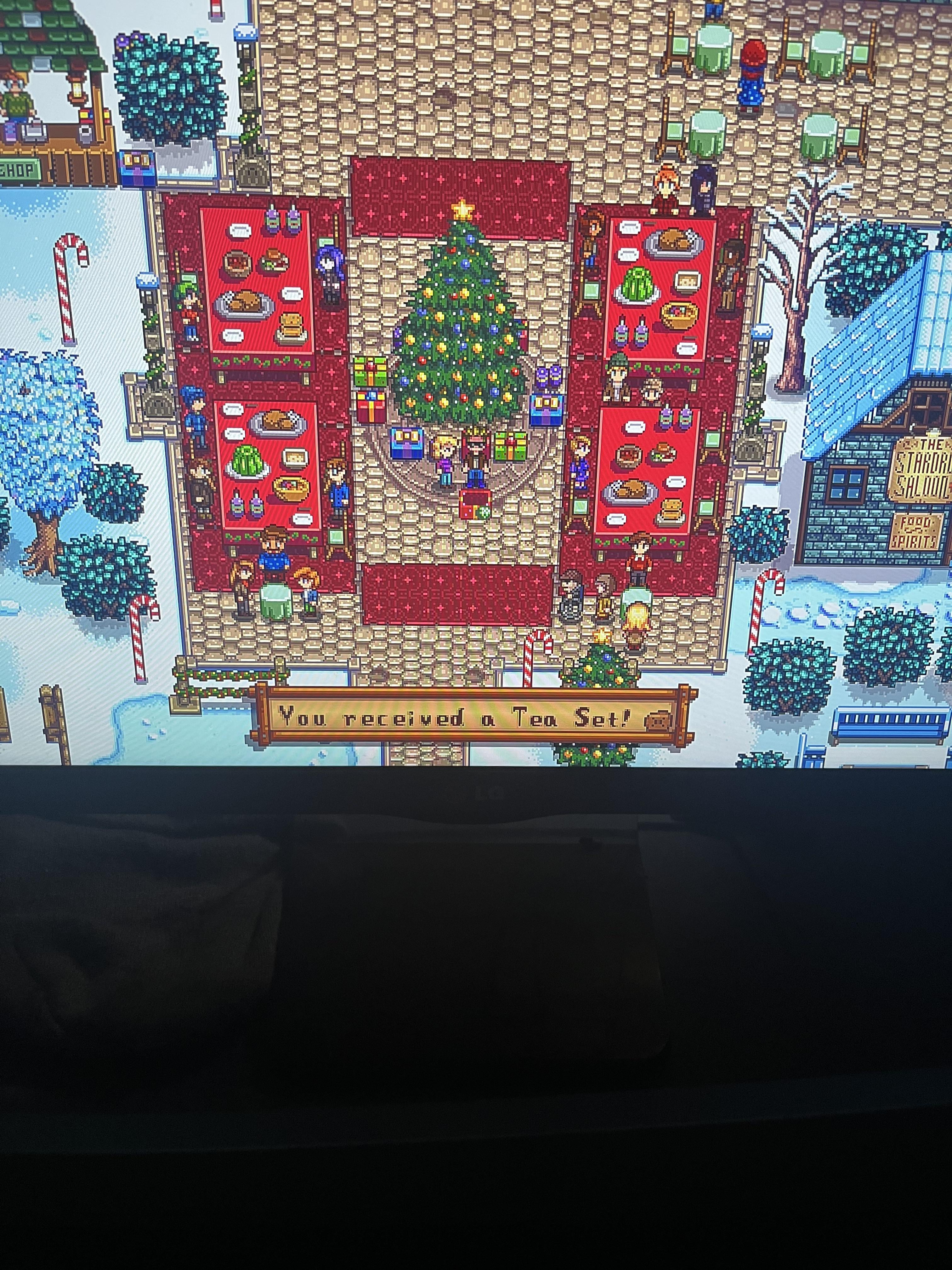 year 1 of a new farm and i got the tea set from pam! i am on year 7 on my other save and still haven’t gotten it so this was shocking. by blunttbimbo Stardew Valley
