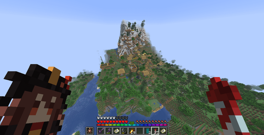 while mapping out my survival world while using banners to pin interesting things, found this floating village. idk i've never seen anything like this before :] by TheoulisesLIV Minecraft Minecraft Seeds
