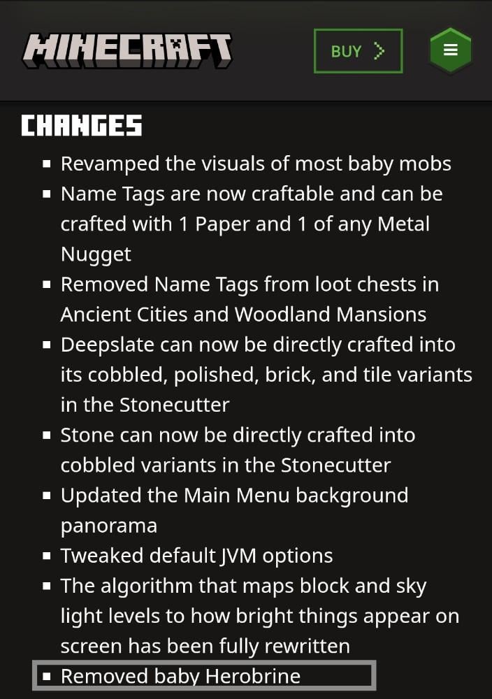 Baby herobrine has been removed