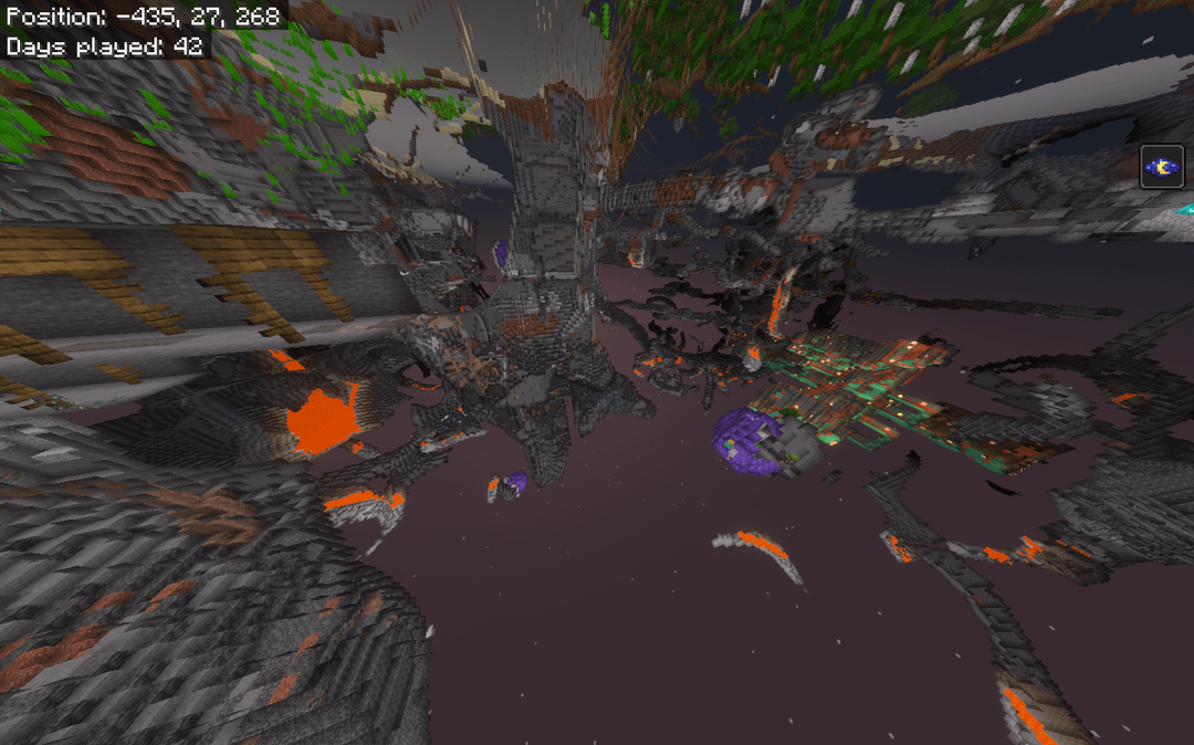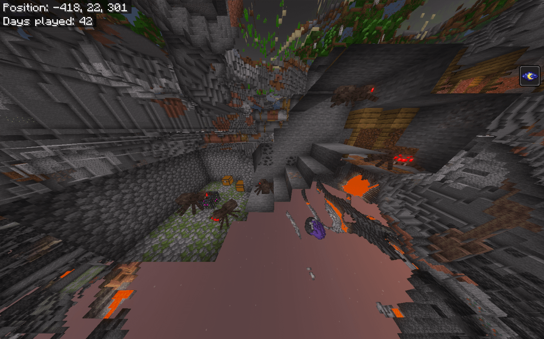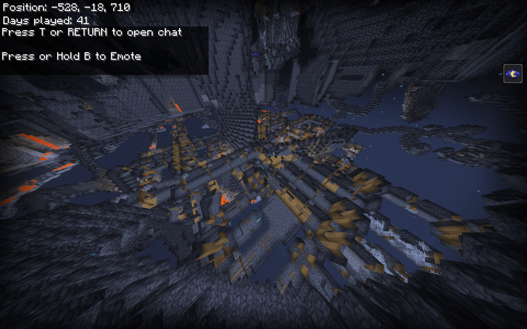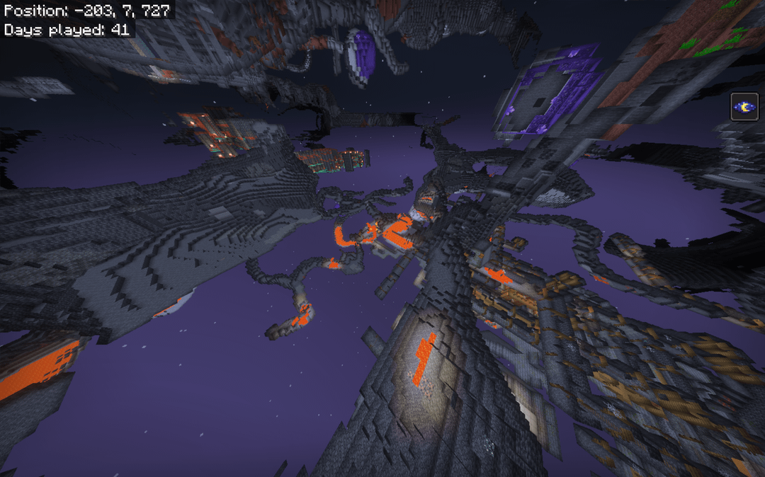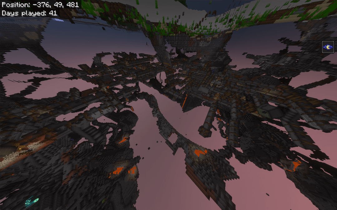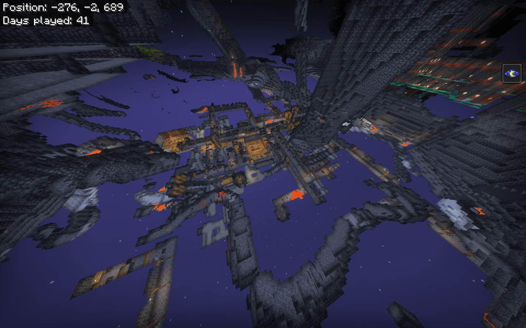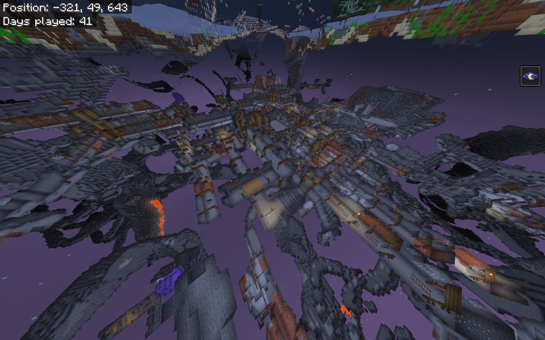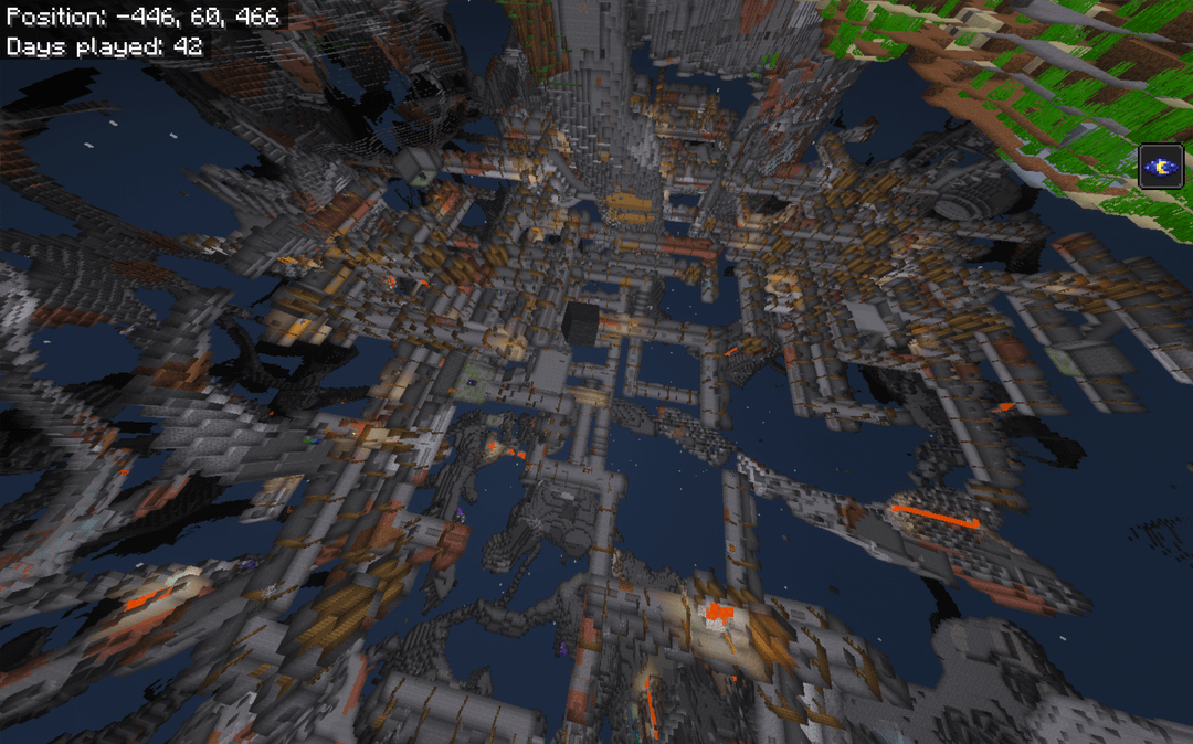 Some shafts were so expansive, I couldn't tell if it was one or multiple. One shaft, by the looks of it, was more than 1,000 blocks wide.