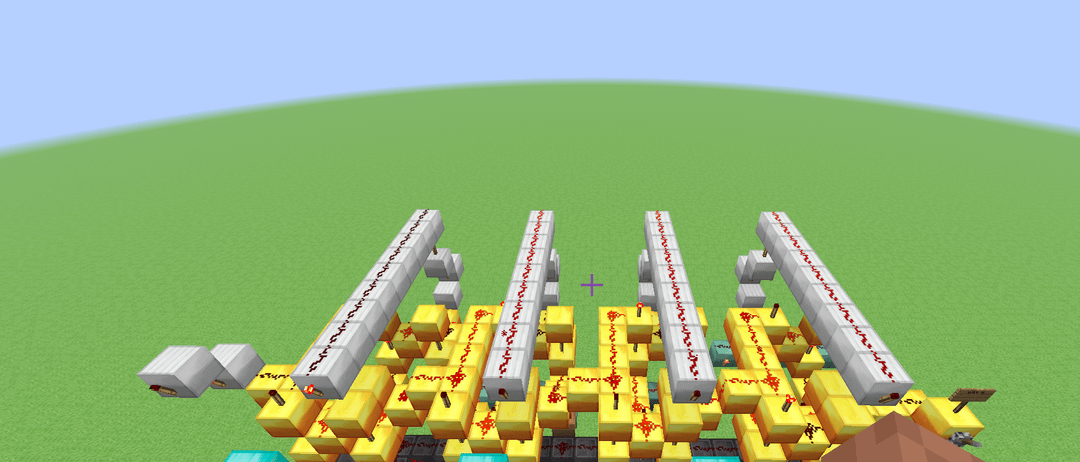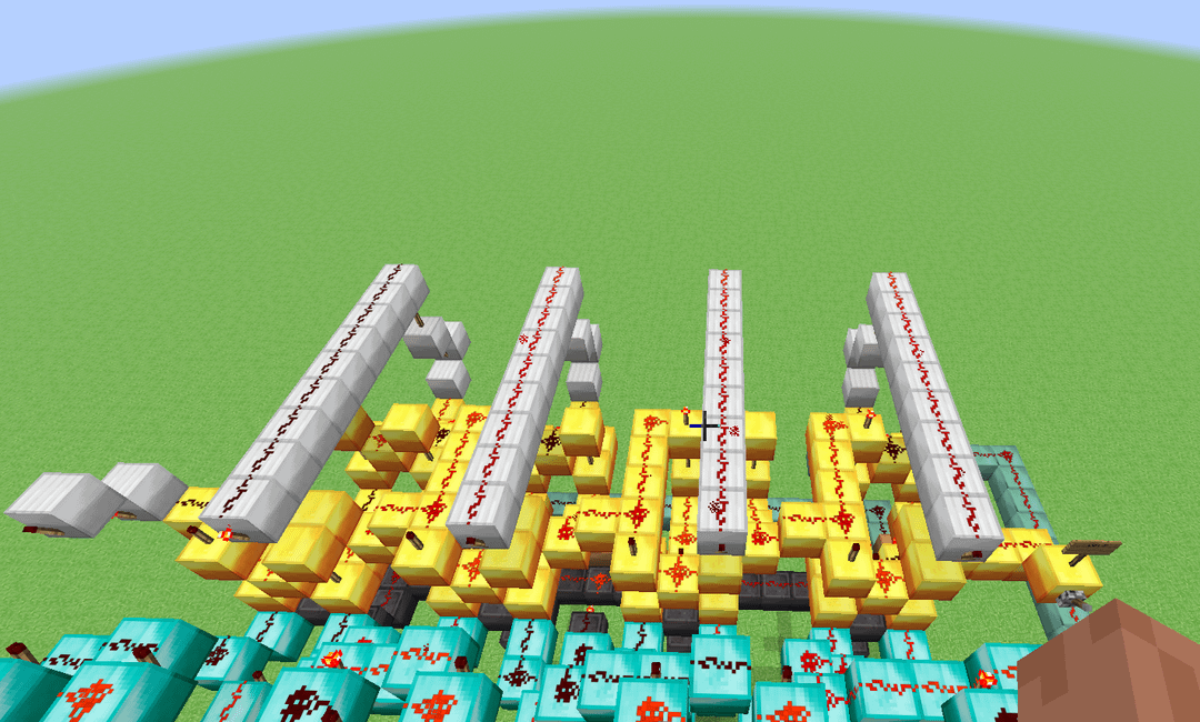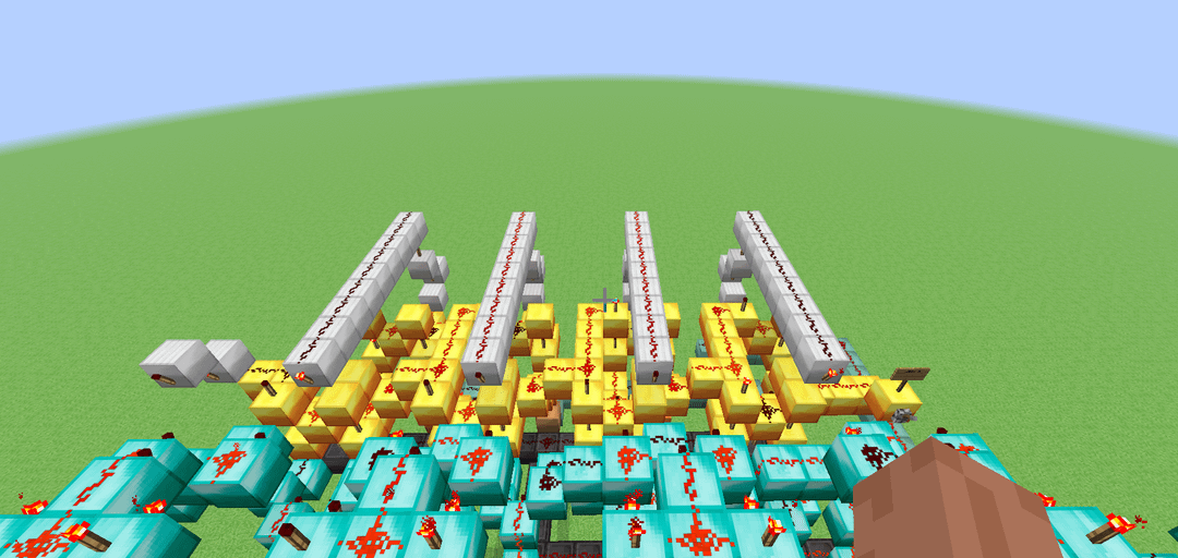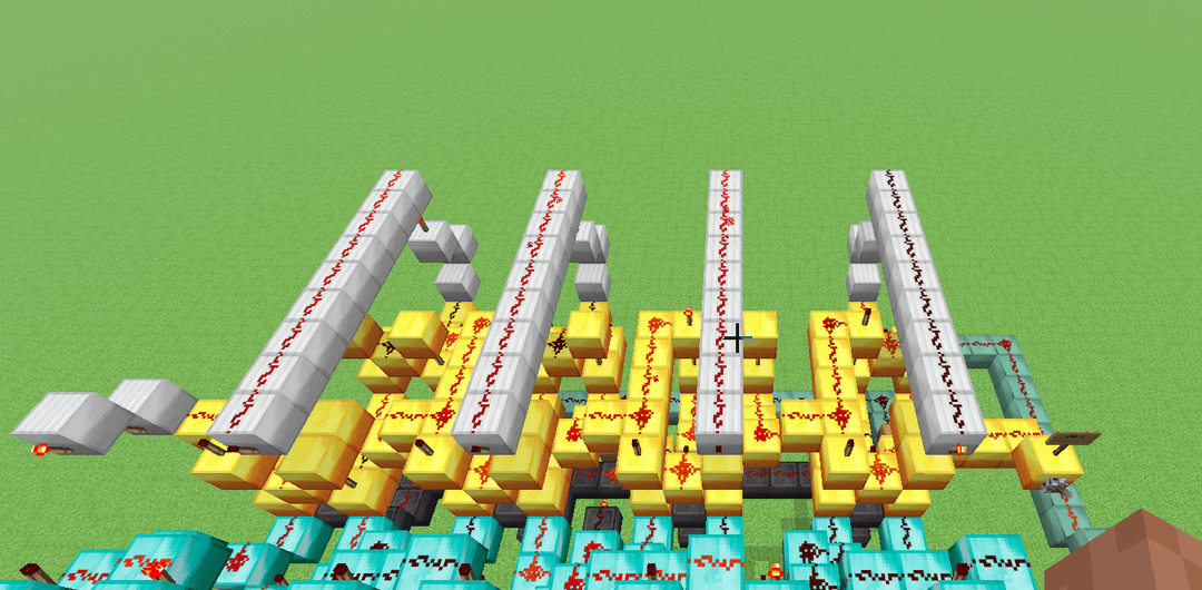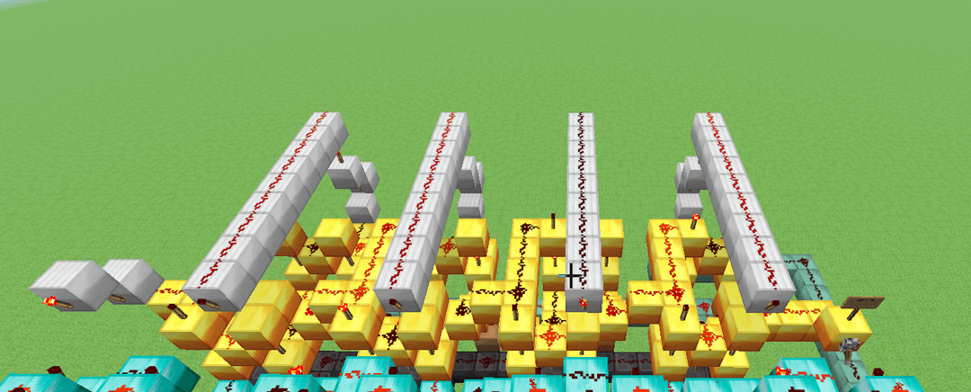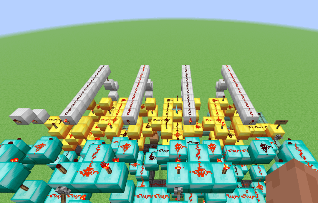 This here is a design for a 4-bit ALU that (theoretically) could be built in a normal alpha minecraft world, meaning that I limited myself to only building with dust, torches, levers and solid blocks. It's slower than molasses, but it has 11 functions (Add, Subtract, XOR, XNOR, OR, NOR, AND, NAND, Implies, Nimplies, Left shift) Credit to mattbatwings's excellent series "Let's Make a Redstone Computer!" for the original design, which I then modified to remove every component that did not comply with my restrictions (mostly subbing out comparators for bulkier block-built logic gates)