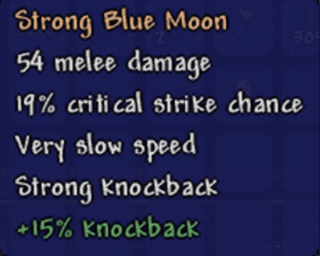 However, blue moon is a flail, which are kinda weird to use since you can spin it quickly at the cost of virtually no range, or toss it in which case it is really slow.