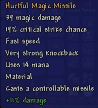 The blue moon is great for when you get your hands on it, especially for worm like things. The magic missile is amazing for exploration, but it’ll be hard to use regularly for combat wince it is mana demanding. The combo of vee keep and magic missile will be great for general exploration, but keep that blue moon around just in case.Â