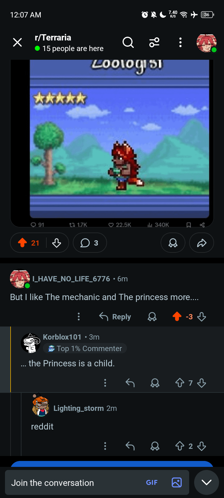 Sweaty-Ball-9565 on March 28, 2026 4:51 pm Terraria doesn’t let you kill kids, unfortunately. This is why her death message is “(Name) the Princess has left!”
