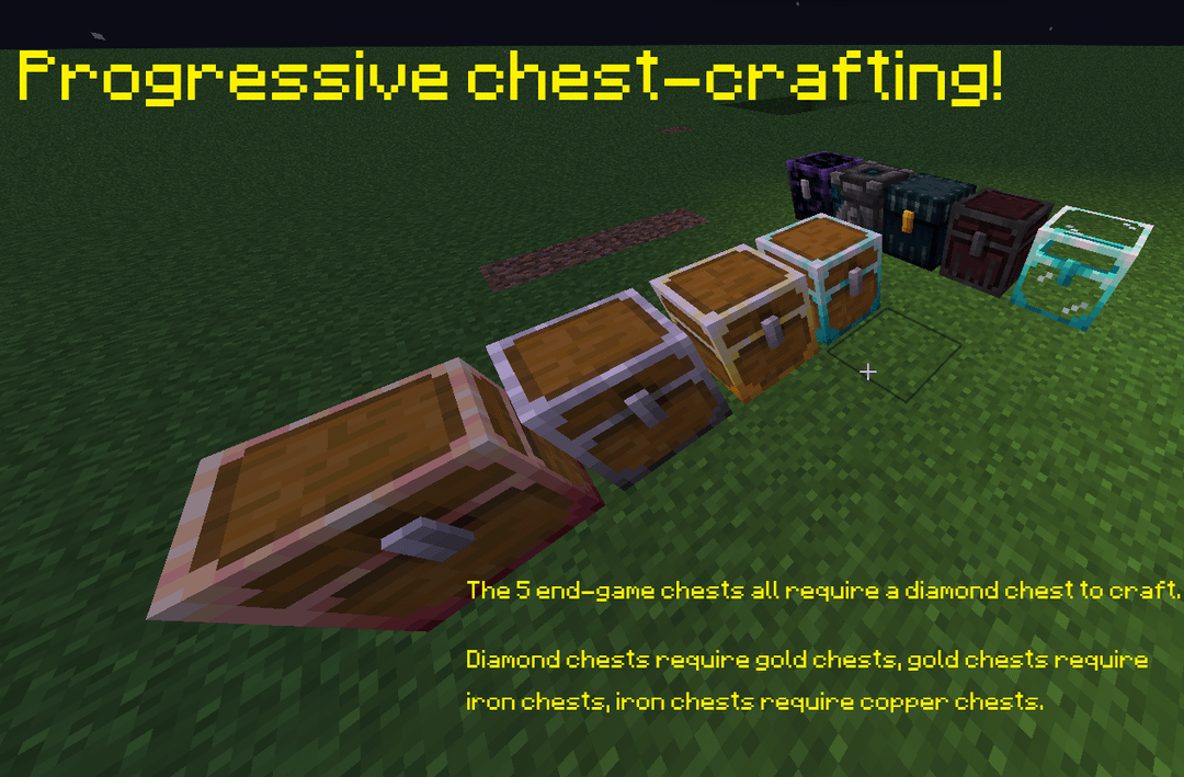 - Chests are crafted using the previous tier of chest, making many resources more valuable long-term