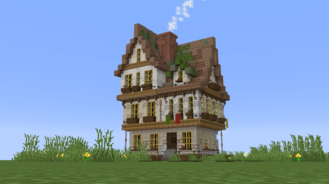 i improved a little my previous house, added some vegetation and details to "complete" it, but it still needs a proper backside (maybie a smaller connection house or smth), and also some trees, bushes and rocks around it. i wanted to try to make the smoke with glass panes, but for now i'll keep this design. What do you think?