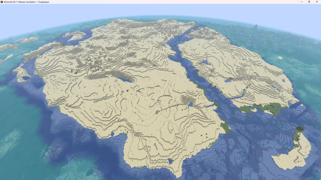 I was using cubiomes today to try to see if I could get a desert island spawn that truly spawns you in a location where getting wood is extremely difficult. My other seeds I've posted with the same intent usually had you within sight range of mainland, so this seed is special because there is no visible mainland when standing on the shores with vanilla max render distance.
