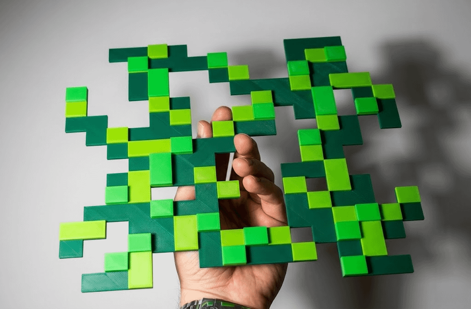 Since I have a 3D printer, I decided to design them as modular "pixel" sections instead. Each piece fits together so I can stack them in different lengths and formations. I used three different shades of green to get that authentic in-game look.