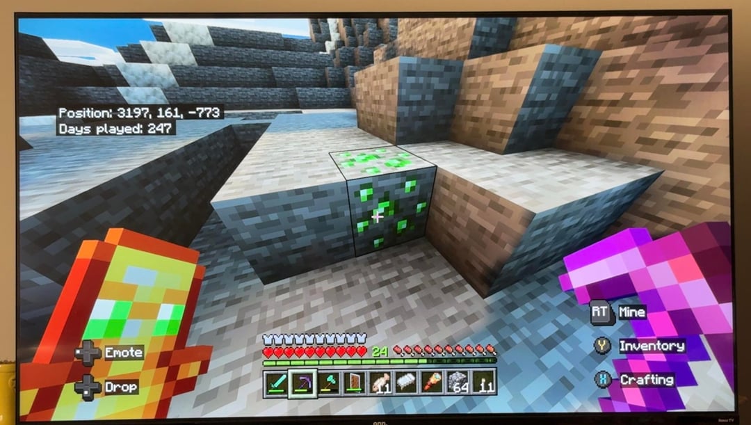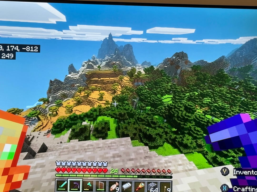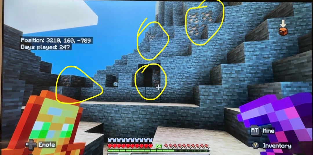 The Stoney peaks are pretty close to spawn. I didn’t have to travel that far. here are the coordinates for them: 3484, 178, -730. I genuinely can’t explain to y’all how many huge veins of coal and iron i found on these moutains. You will not walk a couple of blocks without finding a new vein either of them. and emeralds. I was only able to snap a photo of one, but there are many emeralds. I found about six emeralds im pretty sure. and (3rd last and 2nd last photos), theres some sick ass stripe of calcite that goes through the mountain. I know that’s common but i still think these stripes are cool AND (last photo) there is a savanna biome mixed with an oak/birch biome right in the middle with stone mountains surrounding it. there’s also 2 ancient cities under nearby, a village nearby, and a ruined portal. and TONS of buried treasure near the peaks aswell. I just think this is an awesome place for a base. like if you’re ever running low on coal just walk outside lol