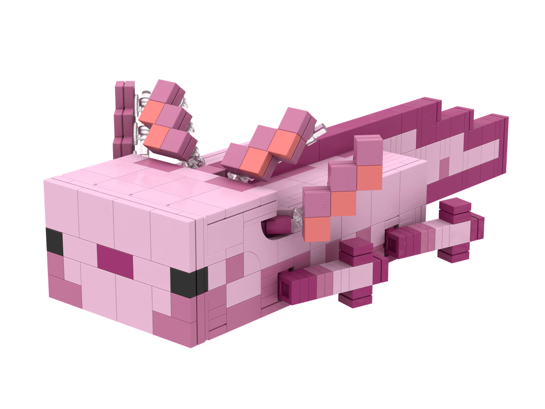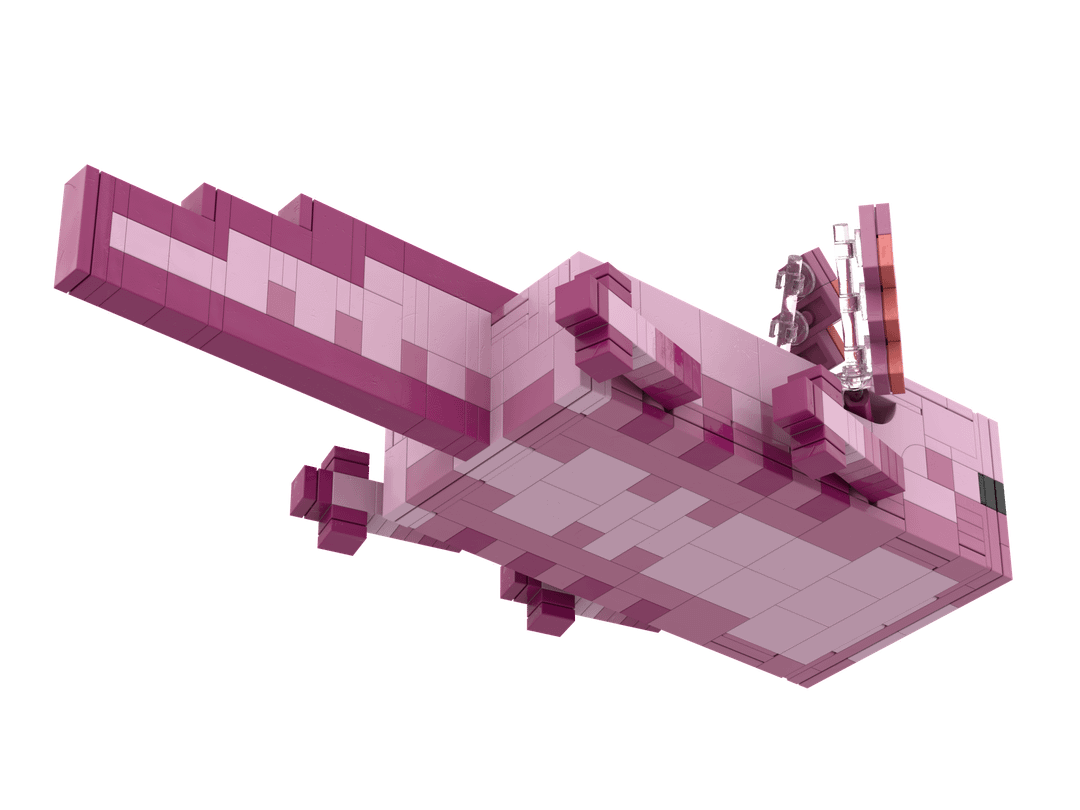 I finally finished my Lego Axolotl model! It's a nearly pixel-perfect recreation of the in-game textures using Lego's colors and about 500 pieces. I have more details, a parts list, and instructions to build it yourself on Rebrickable: https://reb.li/m/257283