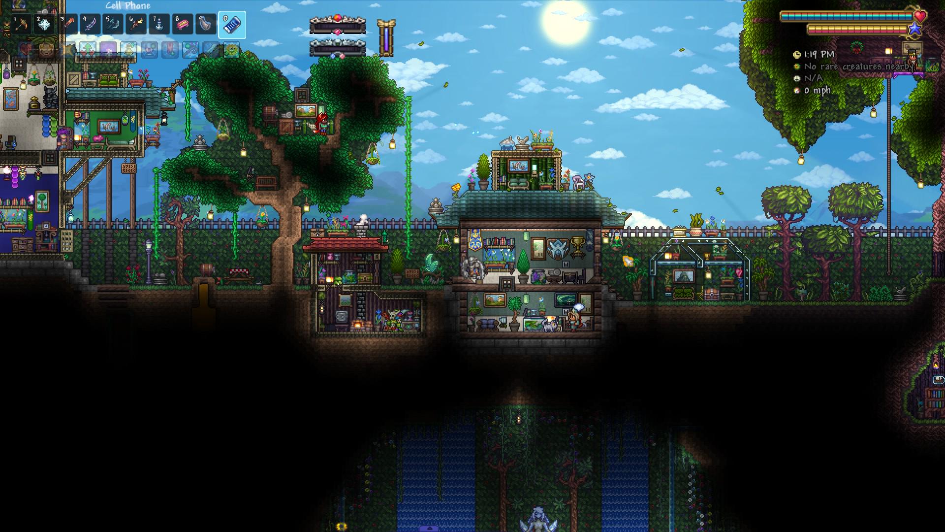 I wanted to make every corner of the world traversible from the get-go hence vines and ladders everywhere. If you can see the secret way to get to the underground shrine you win Kudo's haha. by UncleWarMachine Terraria