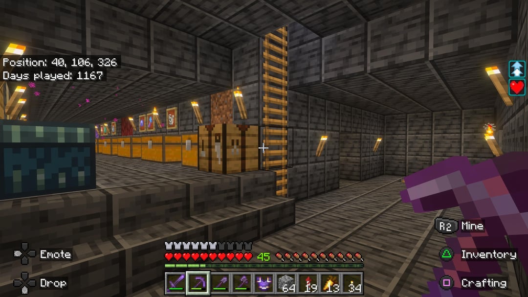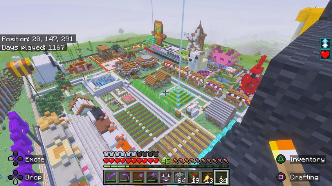 Certainly not as impressive as some others on here, but I’ve only ever played this world an waned to share it. It’s the combination of many times over the last 4 years where I’ve played inconsistently on and off, but rather than starting a new world I just keep at this one.