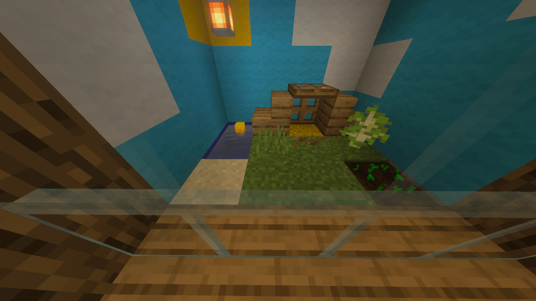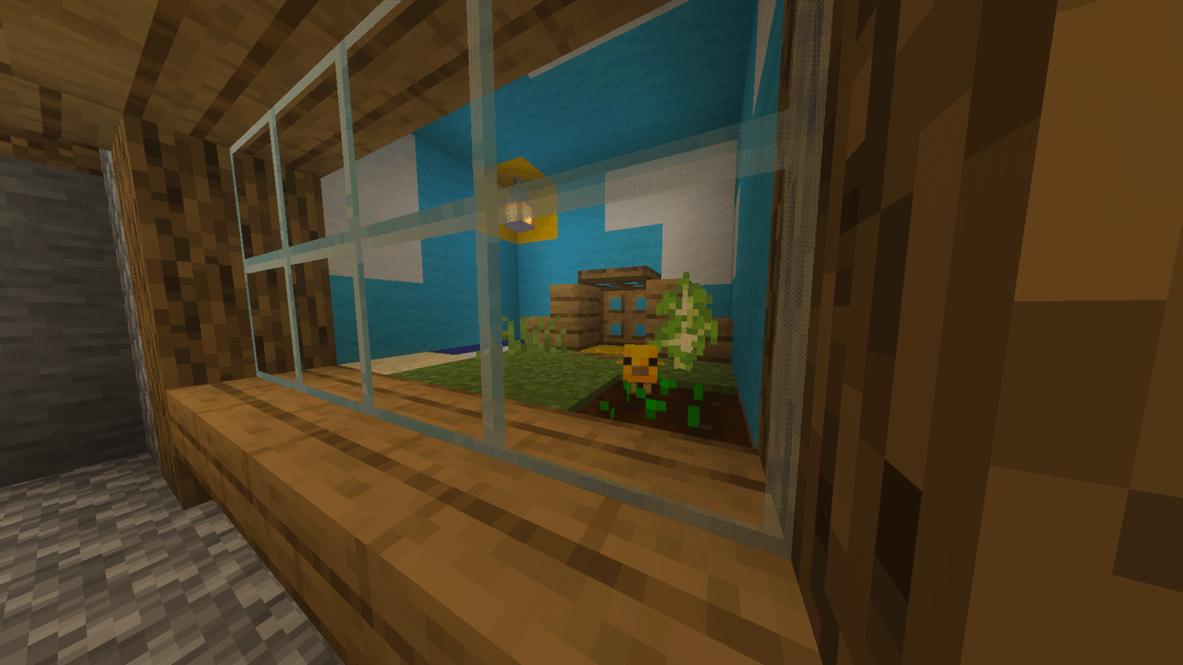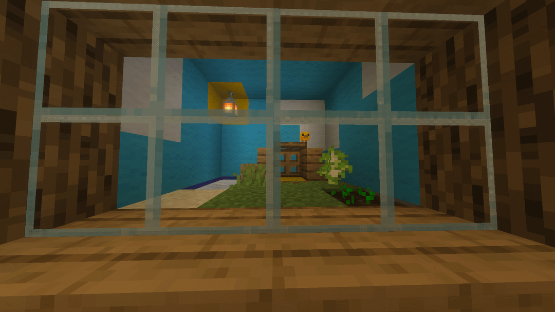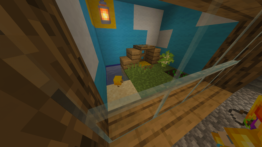 I wanted to name and adopt an eternally young baby chicken but I felt bad just leading it to a fence or keeping it in a typical fence enclosure so I instead made this terrarium for him. As you can see, he can farm, crow, swim, and play all he wants. I think he likes it.