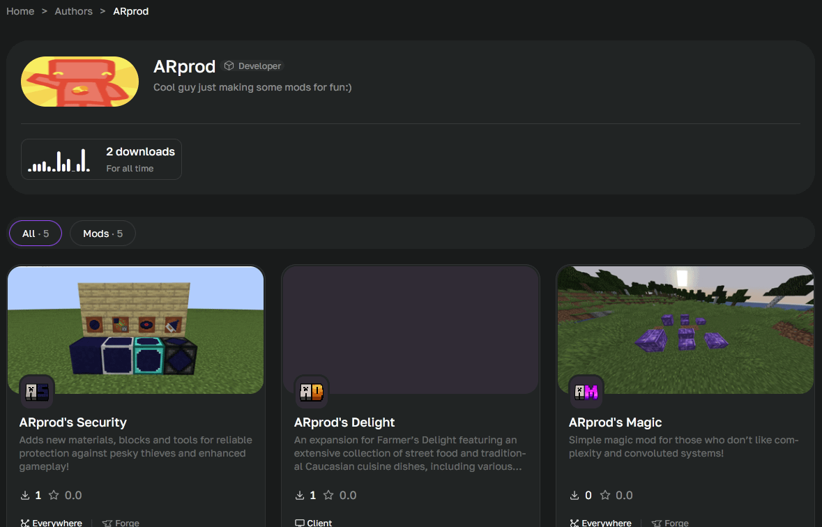 i was surprised because it's a copy of my modrinth page, not the curseforge, which is much more popular (700 downloads vs 20k), there's no reporting option either, i'm not sure what to do or if i should just leave it cause bro litterally got 2 downloads