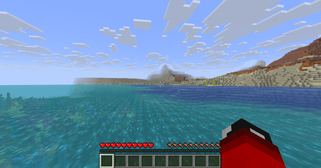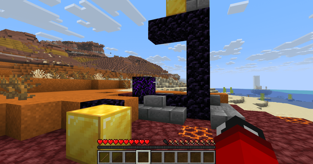 At the south you have an amazing Badlands plateaus and the north you find next the village a beautiful Warm ocean whit coral reef, plus an unusual bug dead bush spawn in the middle of the water whitout block under. At last to the east you can divisive a ruined nether portal almost completed whit a silk touch golden pickaxe (idk if the enchanting is RNG).
