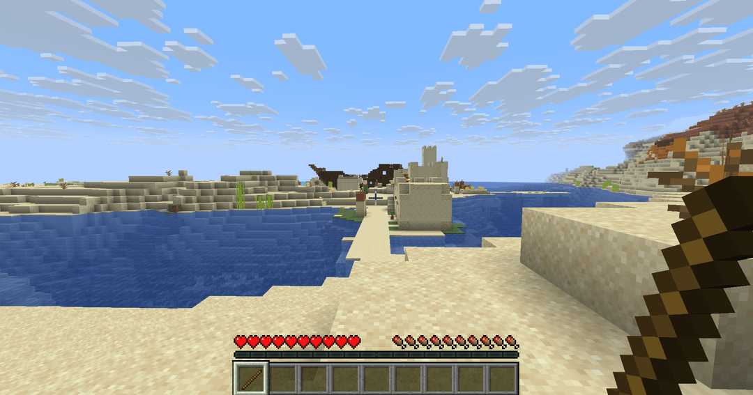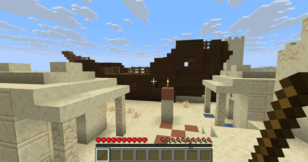 Hello r/minecraftseeds, I come here today because when I was playing yesterday when generate some random world to play (just to clarify Im not a seed finder) just reached to a desert biome at first sight, but turn back was a desert village. Not only that but the first thing you see is the Shipwreck in the middle of the town is over the well whit the bell. It has all chests and one whit a treasure map.