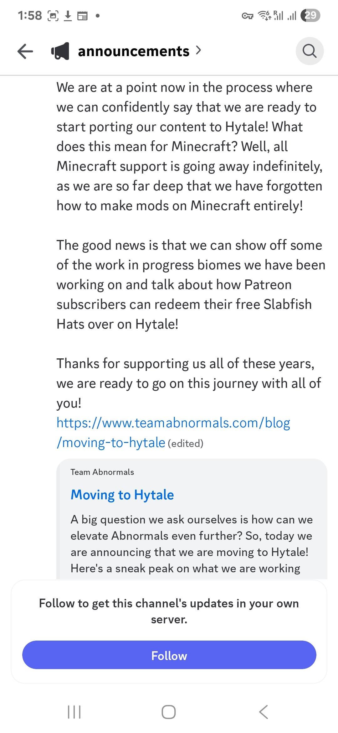 Yesterday, on April Fool's, the Abnormals Team pranked their fanbase on the official discord. They claimed that they were leaving the Minecraft modding scene indefinitely and that they were going to Hytale, providing a link to show their Hytale "project."