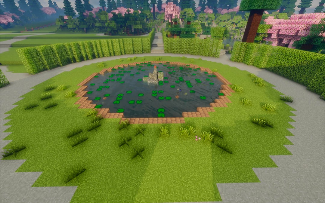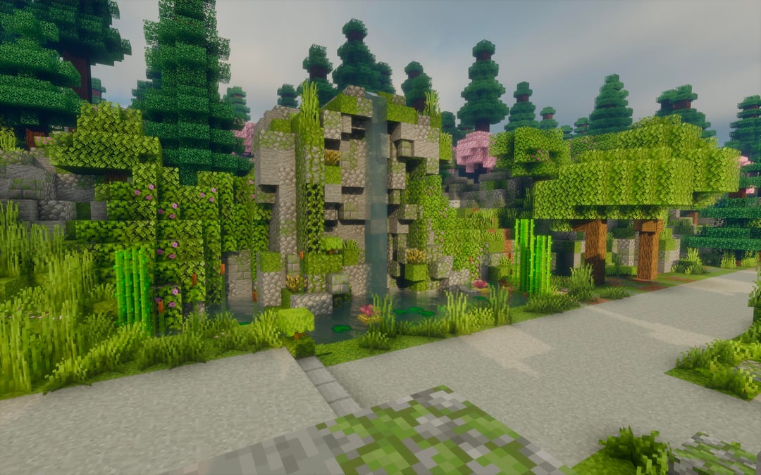 Just finished up with the rock garden, willow fountain, cascade, the case, emperor fountain and the ring pond. Now working on the maze and green houses as well as adding musical easter eggs. by mugiana Minecraft Minecraft Builds
