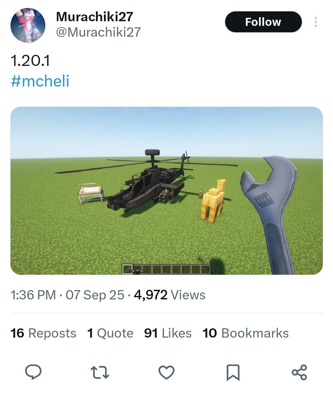 This truly is the year of the ports. So many OG mods are making a comeback. We are truly entering a golden-age where both modern content and the nostalgic GOATs coexists in the same ecosystem. Soon, you'll be able to enjoy MCHeli right along Ice and Fire II and Valkyrien Skies, or whatever you like!