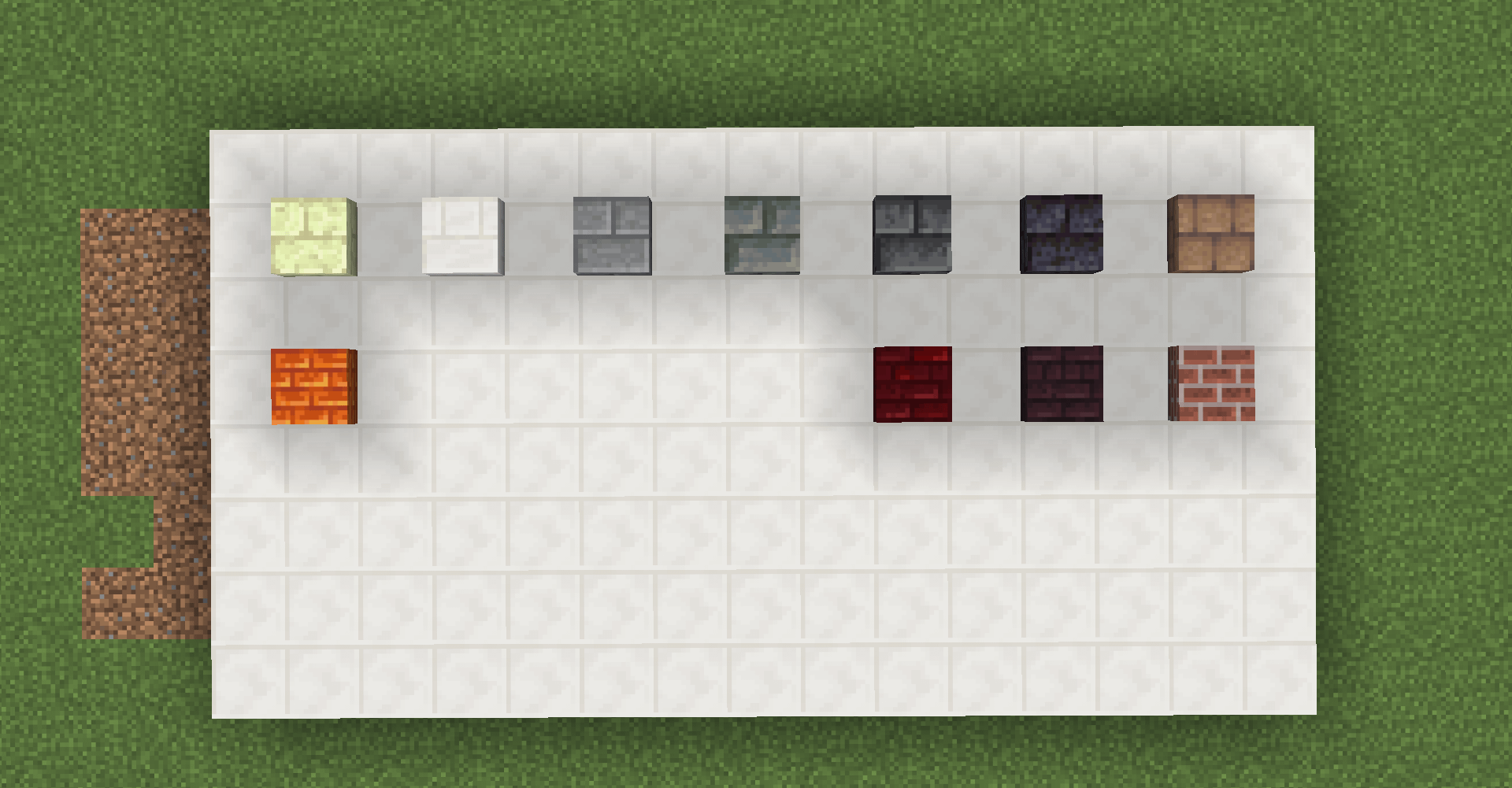 I agree, and more classical bricks. The resin and Nether bricks have to much one tone in color