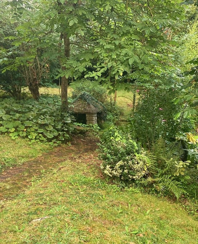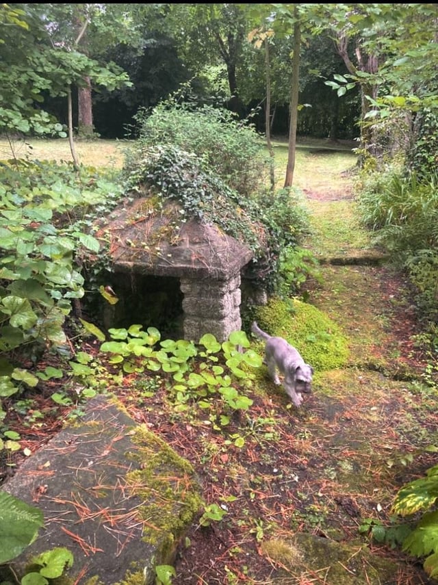 (Little dog for scale) found this random little structure in the garden of a house I'm staying at, maybe I've just been playing too much stardew lately but i immediately thought of junimo huts when I saw it! by peepoobee Stardew Valley