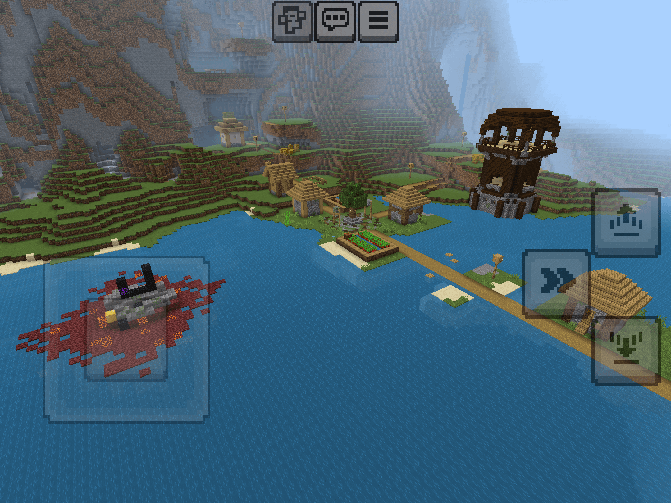 Seed: 4845139847033877462 outpost village on water with fully intact ruined portal and I think it’s cool for once not to have it all squashed up. This is in a sunflower valley meadow with jagged peaks and snowy hills by AdBeneficial3709 Minecraft Minecraft Seeds