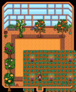 Itβs been a while since I played expanded but I believe there is an option in the new sertings settings for a big green house or regular. I kept the automatic big greenhouse but cleared out everything that was out of the dirt with my hoe and replanted in the correct spots.