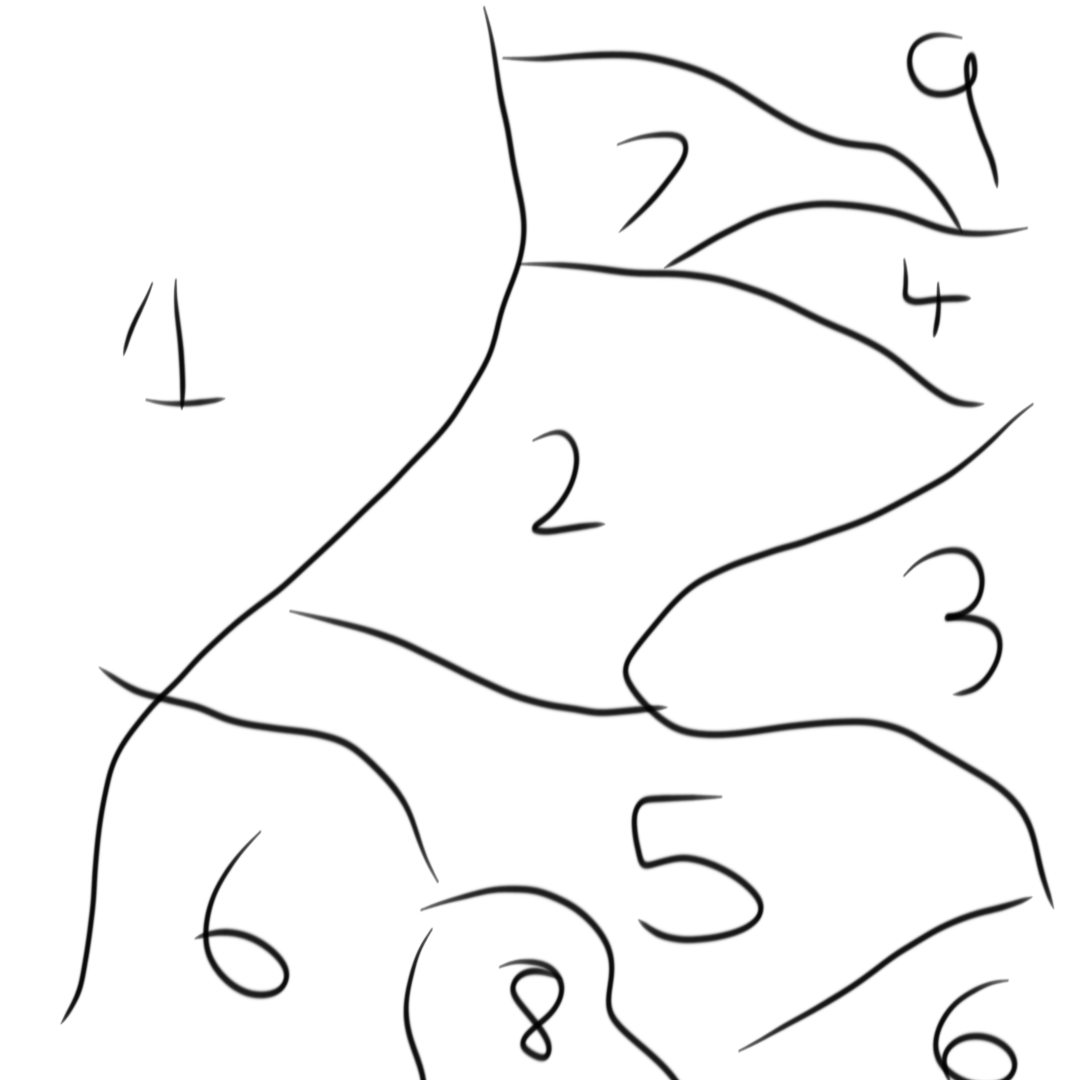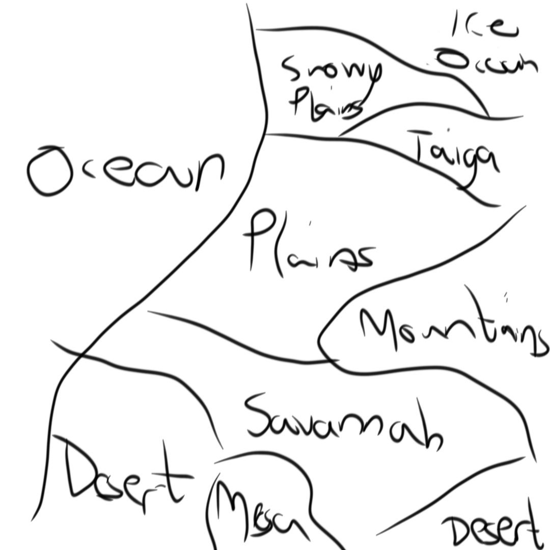 I'm looking to start a new survival world, and I was thinking of a seed like this. Can anyone find something like this? Don't spoil structures or cave biomes. (second image for more clarity; 1 = Ocean, 2= Plains, 3 = Mountains, 4 = Taiga, 5 = Savannah, 6 = Desert, 7= Snowy plains, 8 = Mesa, 9 = Ice Ocean)