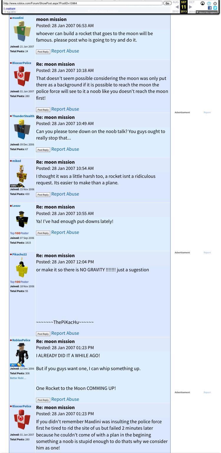 The Roblox Forums 10yrs after this were an utter wild west to say the least, and I say this as a Roblox forum user in 2017.