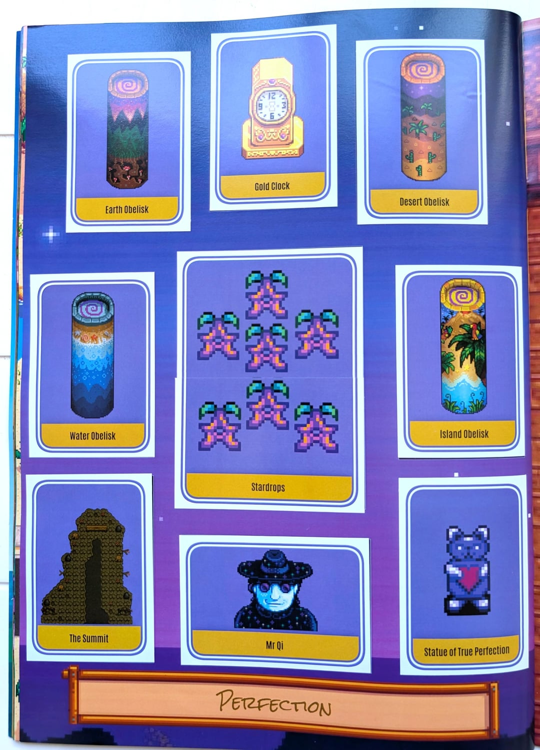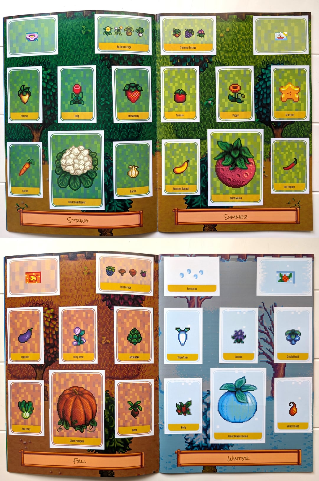 My husband just finished a 3-month project for our anniversary: a physical 150-sticker Stardew Valley collector’s album designed from the ground up, with custom booster packs that I can open like a real TCG set. He used Piskel to prep the sprites and put his heart and soul in every sticker, page and scene.