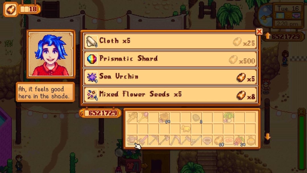 It took me so long to get a prismatic shard, and she just has one?? She even has enough to sell?? Who is she? How did she find it? Is she secretly rich or something. Now Iām starting to question how much Gus pays her at the saloon. I will also never have enough eggs to ever afford it, lol.