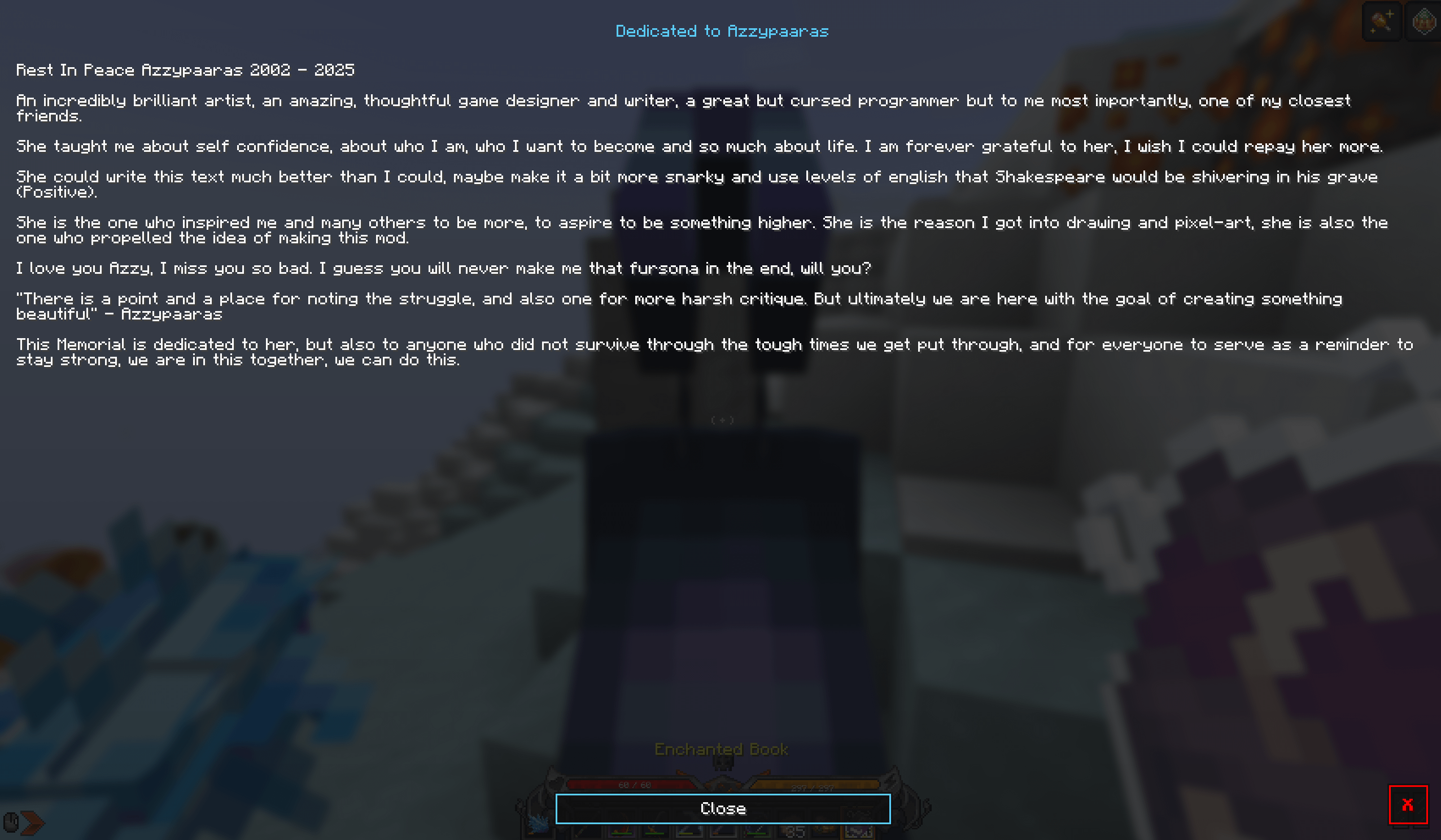 I remember being on the Pastel Discord server when everybody got the news. I had only been there a few days at that point but even then it was still rough as I’ve lost two friends and a sister the same way. From what everybody’s said, I really wish I’d had a chance to get to know her.