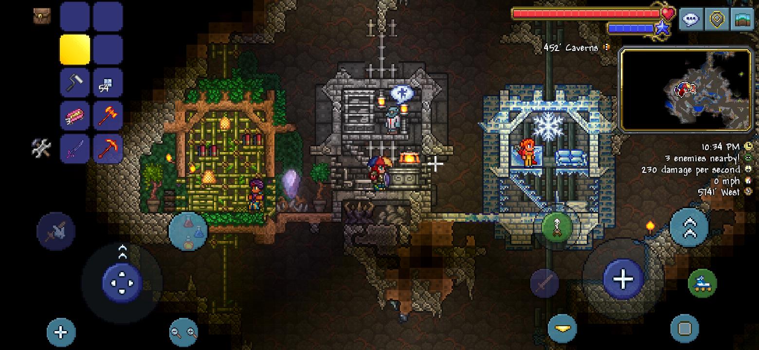 Also, so I started this one so that I could use that one Exploit where you buy a mushroom seed from the dryad, shimmer it to get a jungle seed, turn that seed into green thread and then sell that to the goblin tinkerer, both the goblin tinkerer and the dryad need to be at most happiness that they can for this to work, so I started with the dryad cage first ( the one the dye trader was in) and completely forget that the dryad wasn't supposed to be with the goblin tinkerer. And instead of changing it I keep it as it is because it's kinda match honestly. And I also don't wanna remove it because I think it looked the coolest out of the 3.