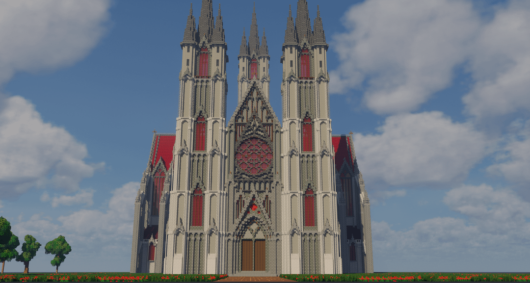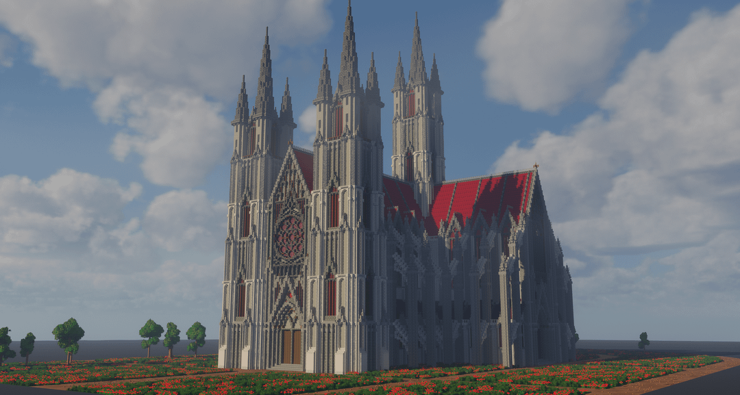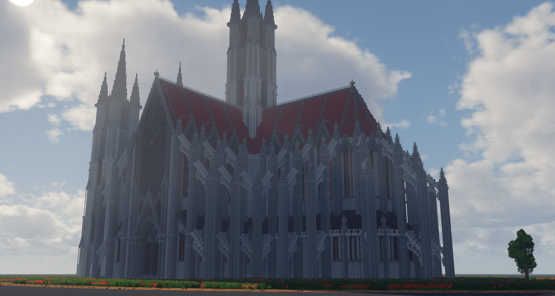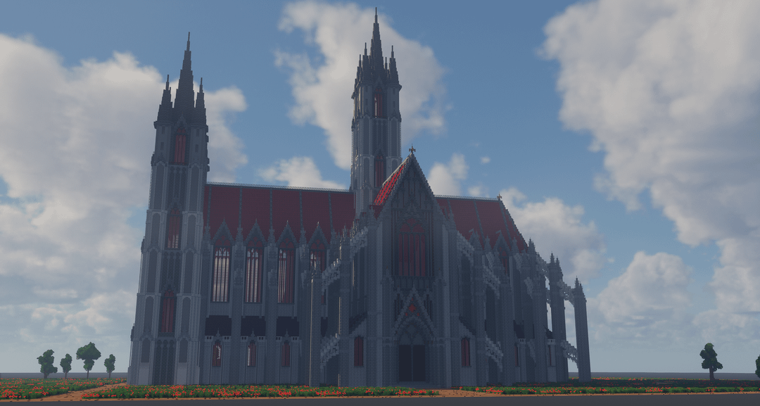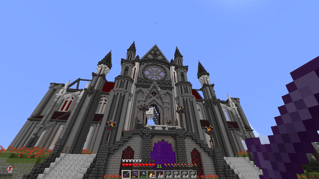 Inspired by GeminiTay's Hermitcraft 11 base I decided to build an actual cathedral using her block pallet and design ideas. The entire build (except for the trees) its survival friendly.