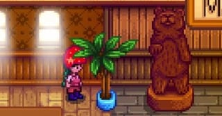 I usually place the bear statue outside the Stardrop Saloon, (to the left by the bushes to be specific) feels right there.