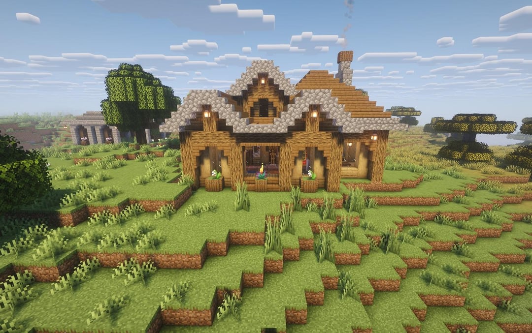 it’s an opportunity to keep a humbler sized house though, & tap into that more “pure” minecraft look without feeling the need to build a mega mansion. you can focus on practicality & fun & build multiple little houses like that too for different purposes, like your enchanting temple over here or a farm with a cooking oven over there… little shack for fishing by the water, [whatever].