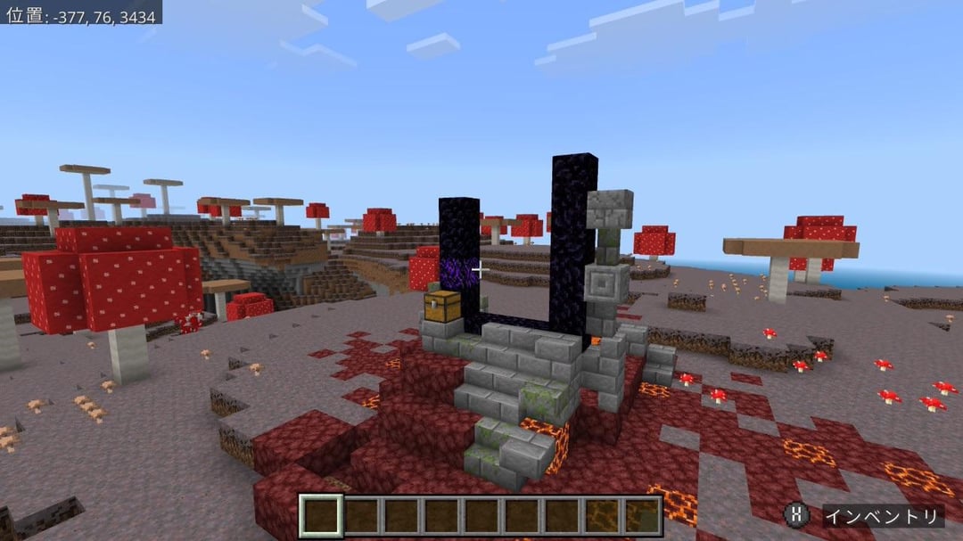 At ~3000 blocks from spawn, I found a MASSIVE Mushroom Island packed with structures: