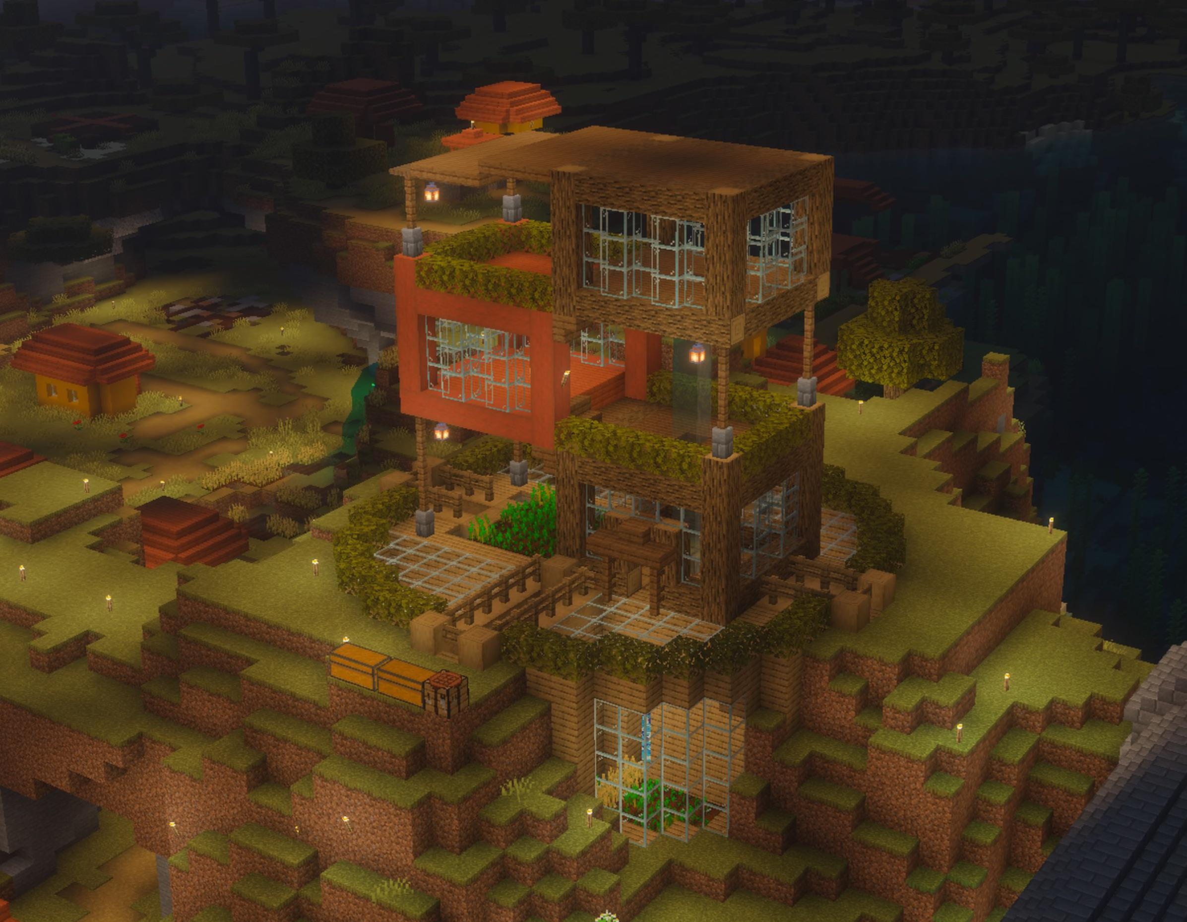 I made this in my survival world on bedrock it took me 10+ hours. The build is heavily inspired by some houses I saw here, i’m not saying I invented it, I just wanted to share it here because i’m pretty happy with how it turned out! I haven’t furnished it yet and plan on upgrading the surroundings (took the picture with a friendly ghast) please share any thoughts/suggestions 🙃