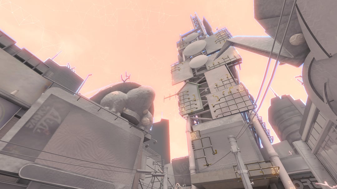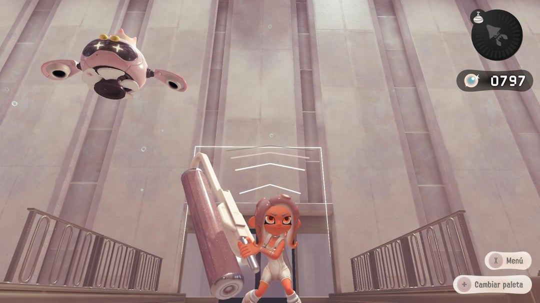 I'm trying to build a map in Minecraft Java 26.1 that is heavily inspired by Splatoon 3: Side Order. In case you're unaware, Side Order takes place in a very modern-looking but colorless tower called the Spire of Order, which appears to be made out of textured gray concrete, glass, shiny metal (presumably stainless steel), tiled floors and walls, and not much more. I included a few images of the Spire for reference, both from the inside and from the outside.